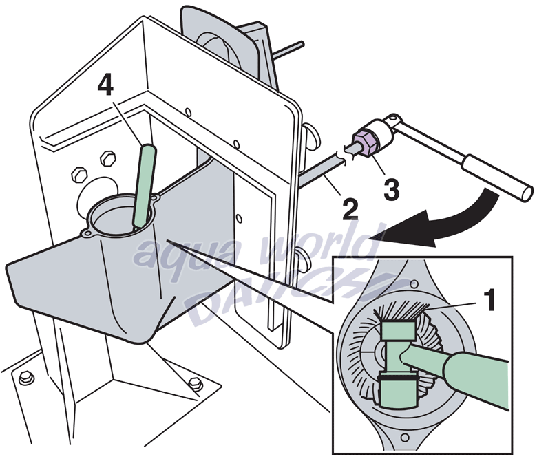 船外機(F50H/F60F)ドライブシャフトとピニオンナットの取り外し作業の例。